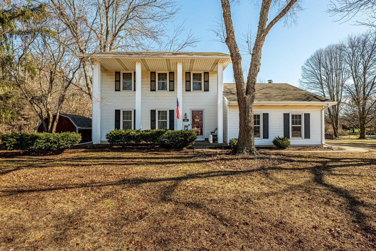 Showings begin 3/12! Elegant & stately 2-story home just seconds from Oregon! Beautiful front pillars welcome you into a spacious foyer leading to the front living room & flows into the dining room. The convenient kitchen offers all the amenities plus great cabinet storage & dining area overlooking the backyard. Cozy up by the fireplace in the family room with newer flooring & walk-out to a generous patio. The main level also features great storage, a 2-car garage & an updated half bath. Upstairs you'll find an updated full bath with walk-through to the primary bedroom boasting a private deck and walk-in closet, and two additional generous sized bedrooms with large closets. The lower level offers laundry, mechanicals, ample storage, and the potential to finish additional living space. Enjoy mature trees, a storage shed, and a private but spacious yard. Being just minutes from Hwy 14, parks, and greenspace this one practically has it all! Schedule your showing today!