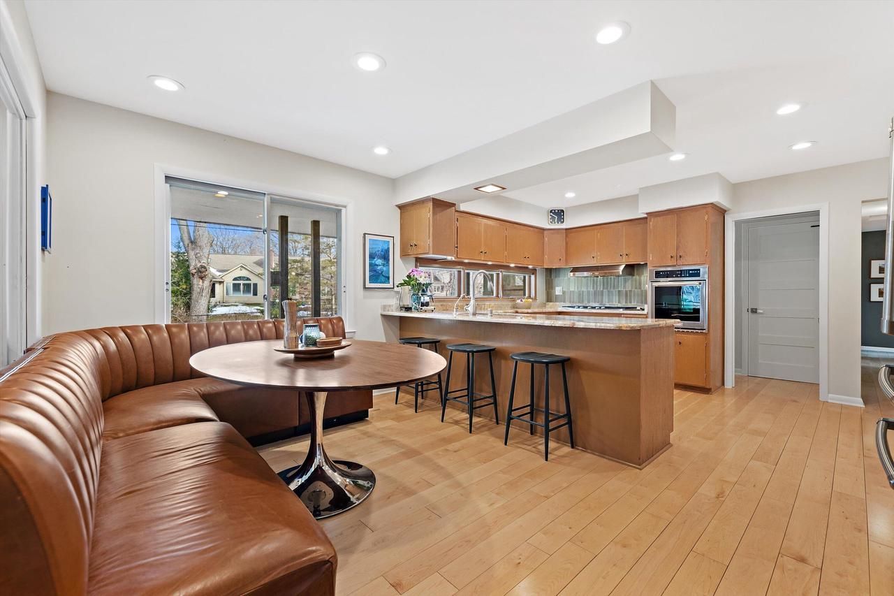 Tucked away on a private cul-de-sac next to Boerner Botanical Gardens, this beautifully designed ranch offers a rare blend of privacy, character, and indoor-outdoor living. The spacious great room features a dual-sided fireplace, abundant natural light, and seamless flow into a 3-season room with year-round backyard views. The expansive yard is a true standout--mature trees, open green space, fire pit, and treehouse create a setting perfect for both relaxing and entertaining. Flexible living spaces, including a wide-open lower level, offer room to grow, work, or host. Ideally located near Whitnall Park, Root River Pkwy, dining, and more.