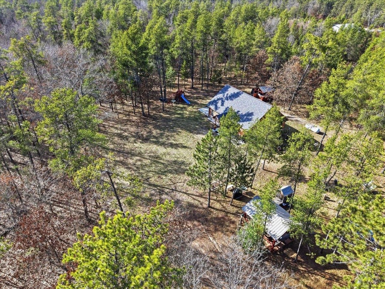Built in 2023, this 3 bedroom, 1.5 bath home sits on nearly 5 wooded acres and offers a bright open-concept layout with quality finishes throughout. The kitchen features custom cabinetry and granite countertops, while fiberglass triple-pane Gilkey windows provide excellent natural light and efficiency. Step outside to enjoy the patio, gazebo with electricity, outdoor smoker, and your own private shooting range. A hot tub is already in place with a designated area ready for hookup. The 20x30 pole shed provides great space for storage or hobbies. All furnishings are included, making this a true move-in ready home or weekend retreat just minutes from Castle Rock Lake and Buckhorn State Park.